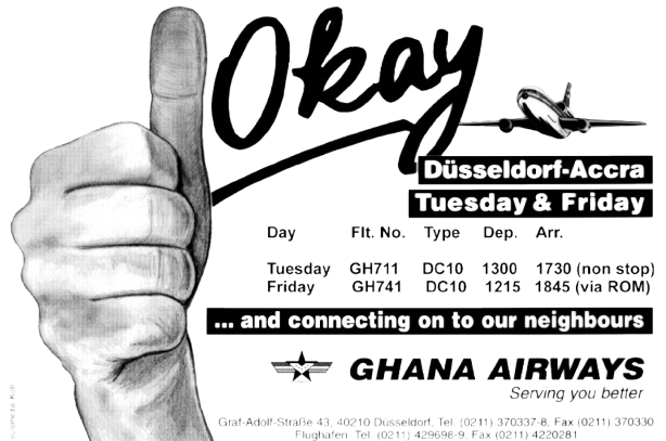 1998 Ghana Airways advertisement - Airline is out of order for over 23 years, as of 2025. Thanks to responsibility of Ghana government.